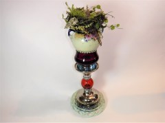 A mix of extraordinary vintage glass and porcelain sugar bowl combined with thrift shop finds.