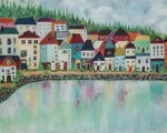 Seaside Village. Sold. Acrylic on canvas. 30″ x 24″ x 1.5″. (#1456)
