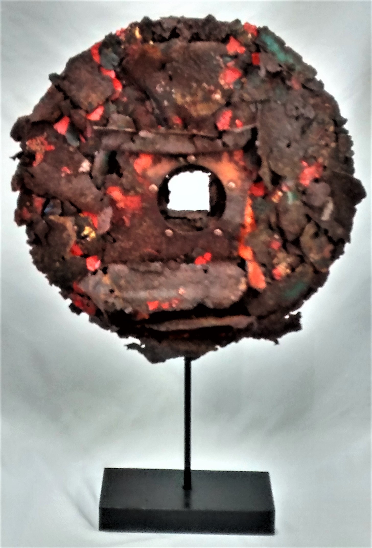 Historically, some pieces of assemblage art, such as works by the great Robert Rauschenberg, were valued for their anti-aesthetic character. However, the aesthetics of Rusty Disk actually appeal to me, as I love its shape, colour, and texture. I’m also very pleased to have re-purposed it and given it a new life.